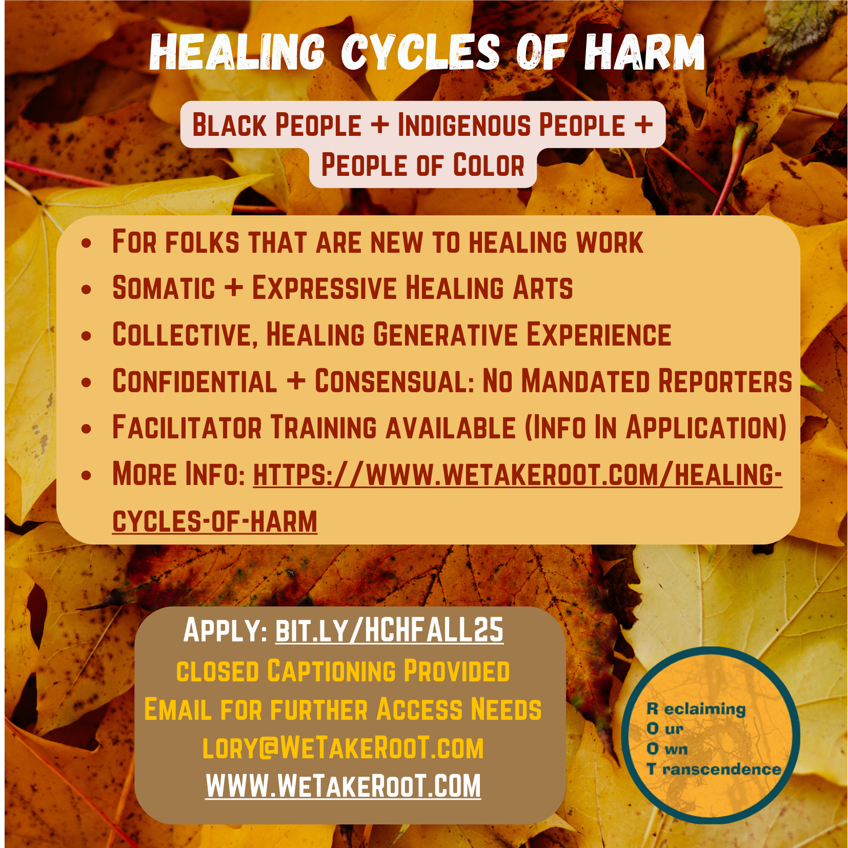 Applications open until spaces are filled. We limit our circle to 16 participants to maintain safety and connection.